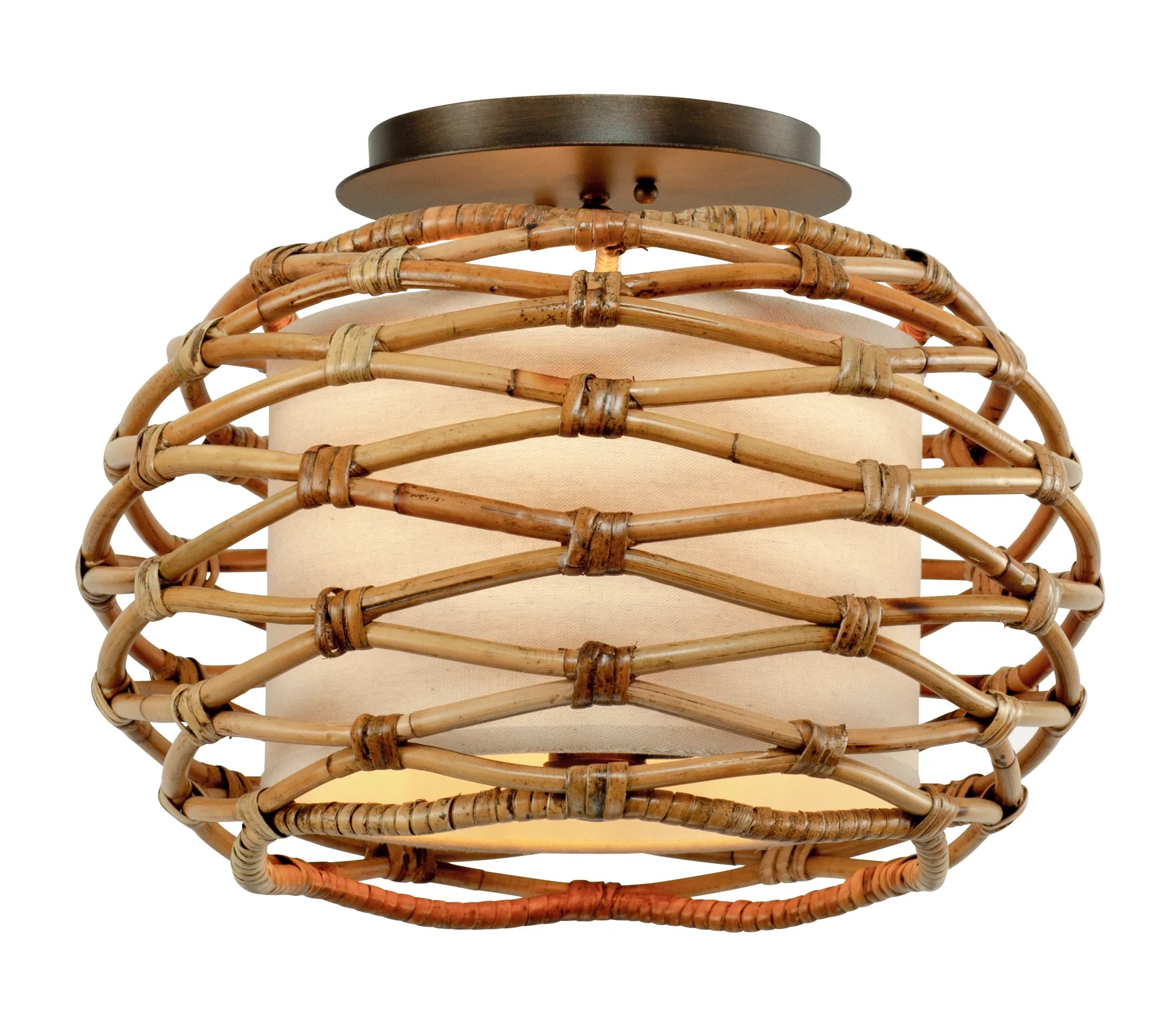 Balboa brings coastal-inspired texture and craftsmanship to your ceiling with its handwoven rattan exterior and soft linen inner shade. The woven pattern is designed with meticulous detail, creating a warm, layered glow that feels both natural and refined.