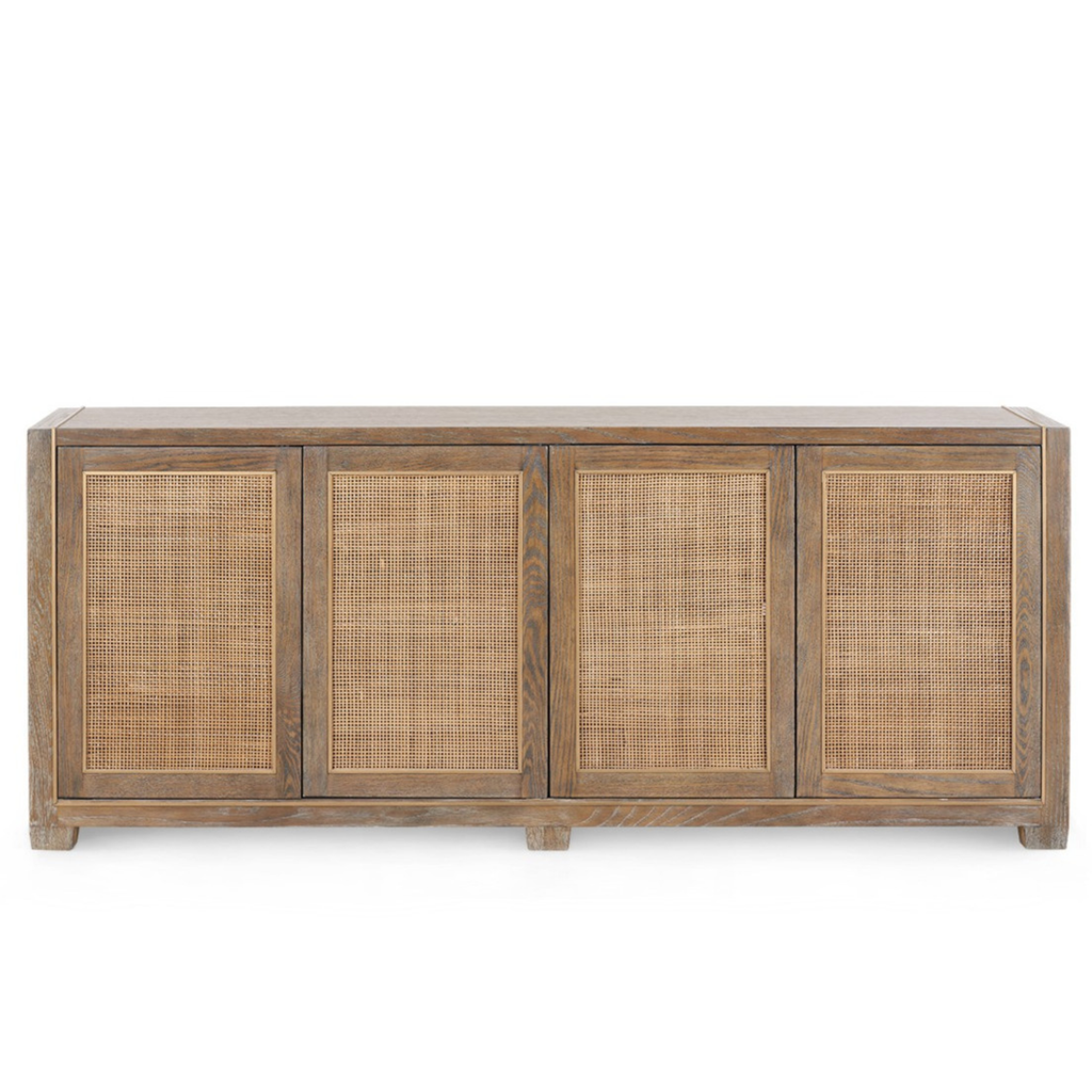 The Carrington Sideboard blends timeless craftsmanship with natural materials, creating a sophisticated piece that elevates both form and function. Crafted from cerused oak and accented with handwoven cane panels framed in satin bronze, it strikes the perfect balance between organic texture and refined design. Ample interior shelving and discreet drawers offer versatile storage, making it as practical as it is beautiful.