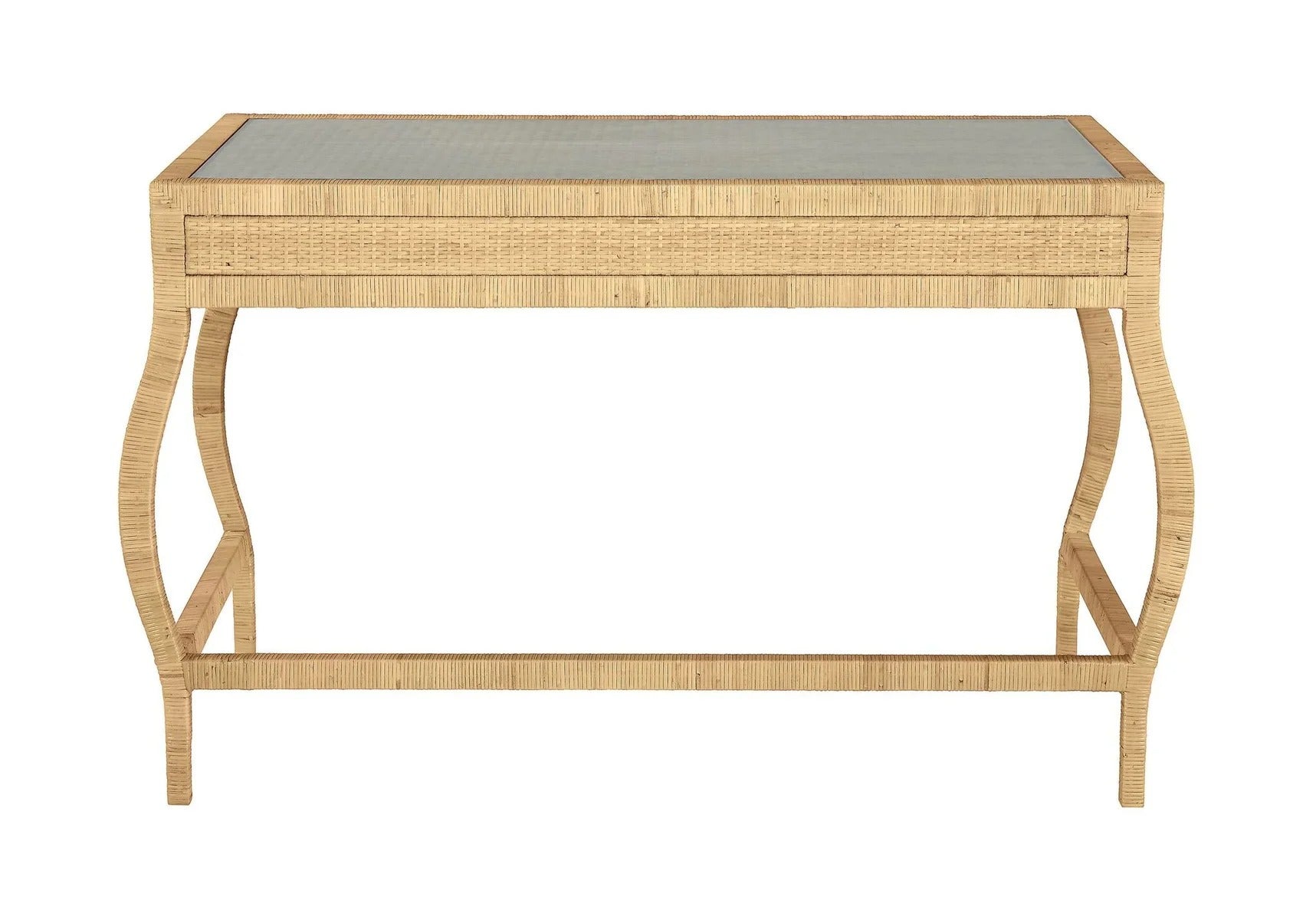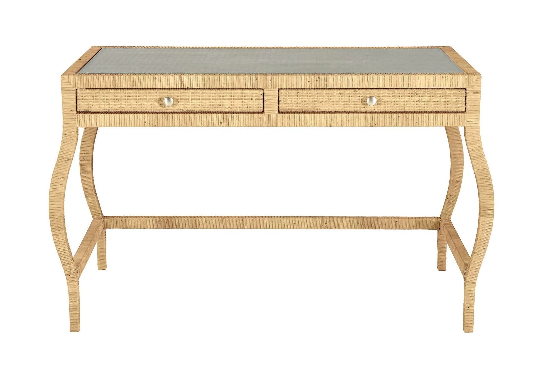 The Celine Desk brings a refined, coastal-classic touch to any workspace with its sculptural legs, handwoven rattan detailing, and beautifully recessed tempered-glass top. The natural finish keeps the look airy and relaxed, while the craftsmanship feels elevated and timeless — perfect for a home office, bedroom, or entry space where style matters just as much as function.