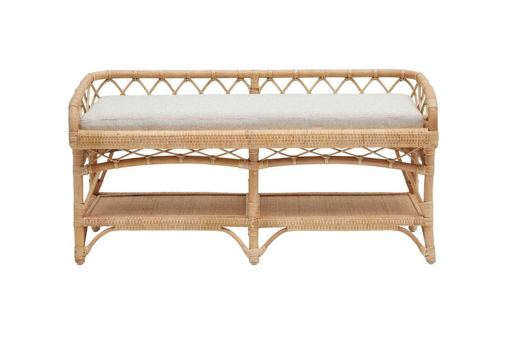 A beautifully woven rattan silhouette gives the Charleston 48" Bench its breezy, coastal charm. The open latticework back and gently curved arms create an inviting profile, while the natural finish keeps it light, fresh, and timeless. Perfect for an entryway, bedroom, or sunlit nook, it offers both style and everyday functionality.