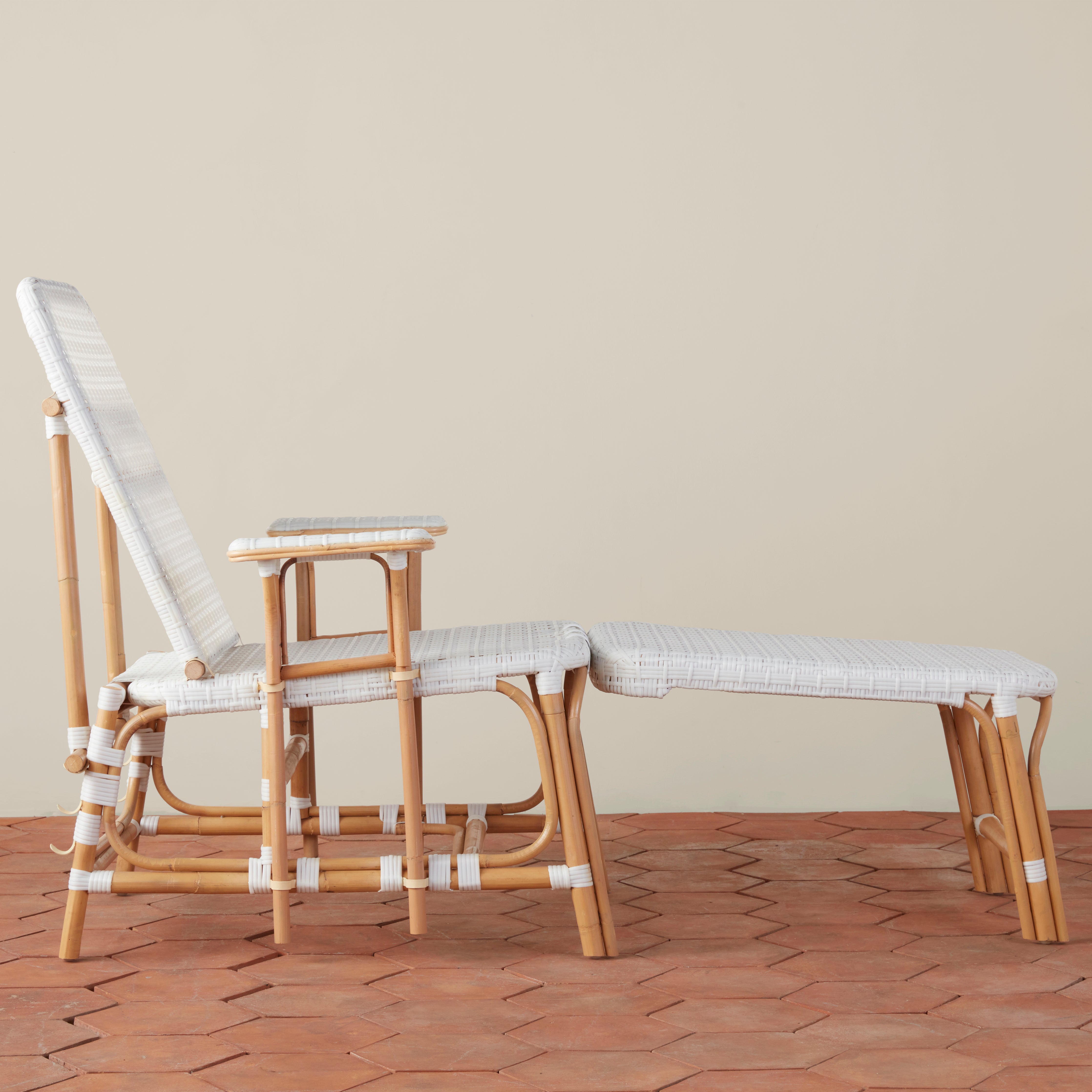 Its extended length and adjustable backrest let you lounge in comfort, while wide armrests provide space for a book or a cool drink. Natural variations in the rattan add depth and charm, ensuring each piece feels unique and timeless.