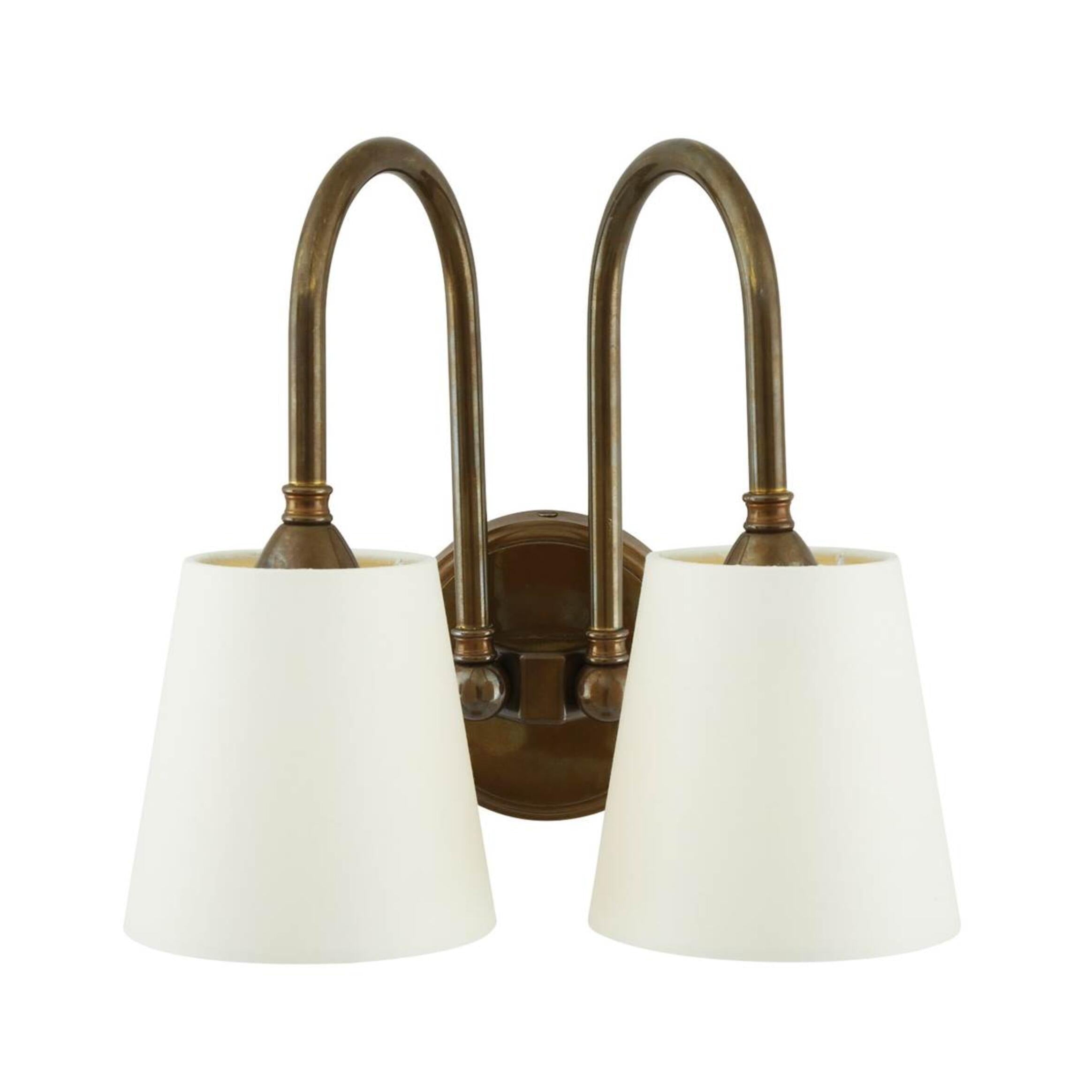The Hadleigh Wall Sconce brings graceful symmetry and understated charm to any room. Crafted from solid brass, this twin-arm fixture features two gently curved arms supporting tailored fabric lampshades that cast a warm, inviting glow. Its balanced design blends classic detailing with modern refinement for a look that feels both timeless and fresh.