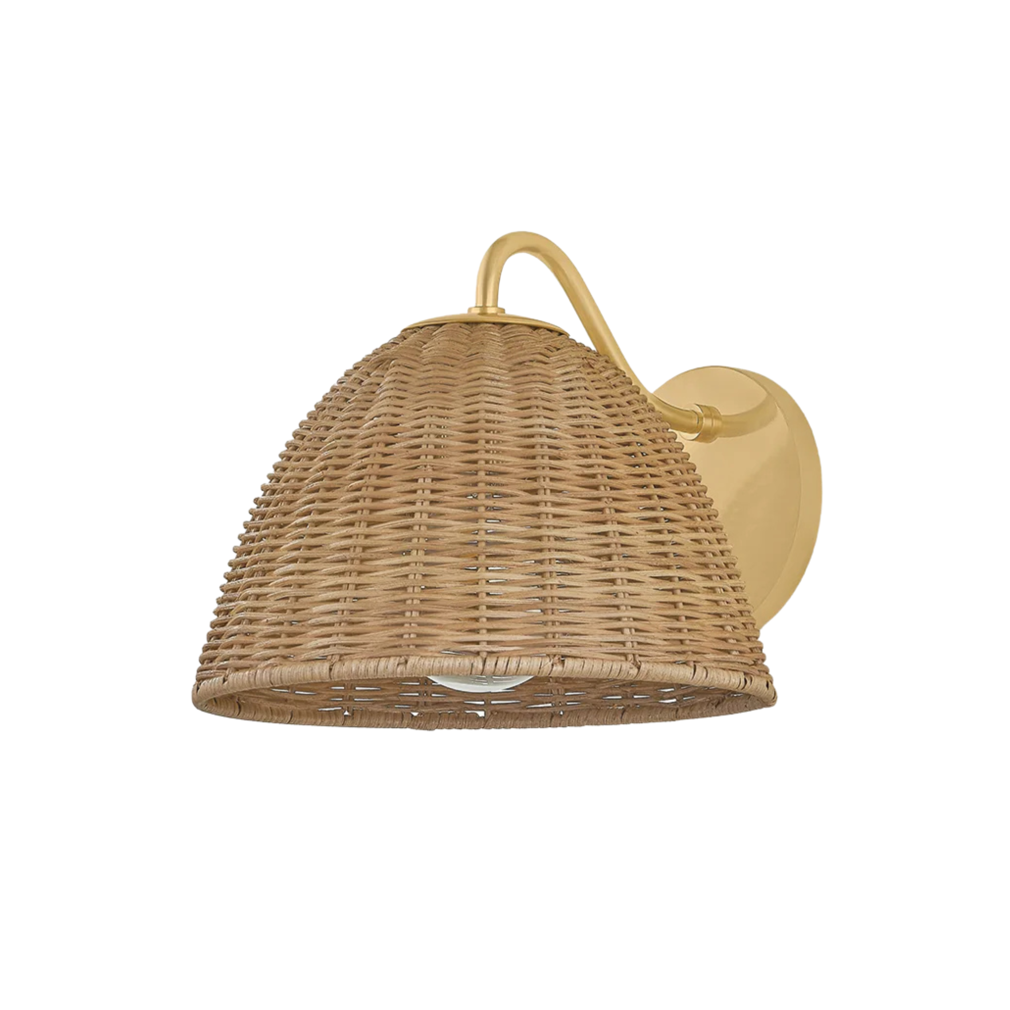 The Katniss Wall Sconce adds warmth and texture through natural woven detail and a softly curved silhouette. Its handwoven wicker shade brings an organic, collected feel that instantly softens a space, making it an easy choice for bedrooms, hallways, and relaxed living areas.