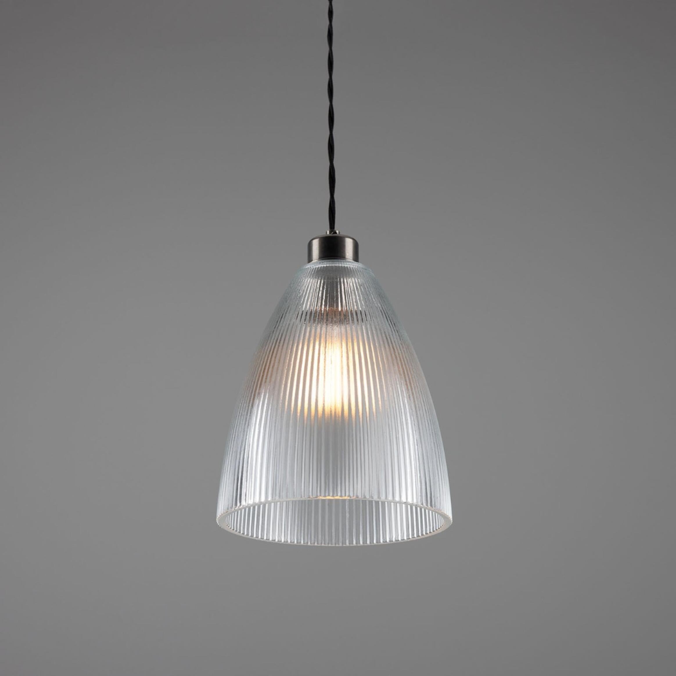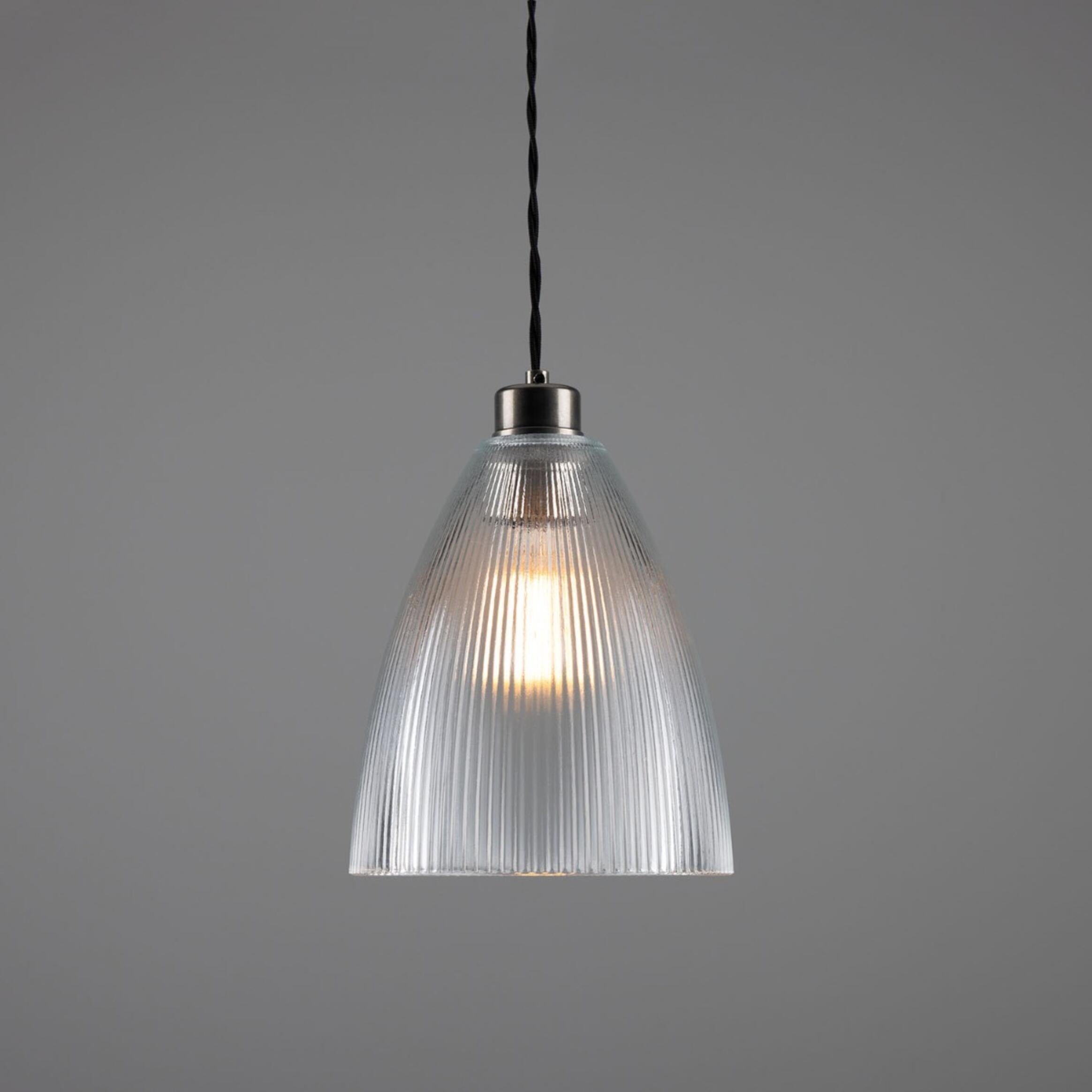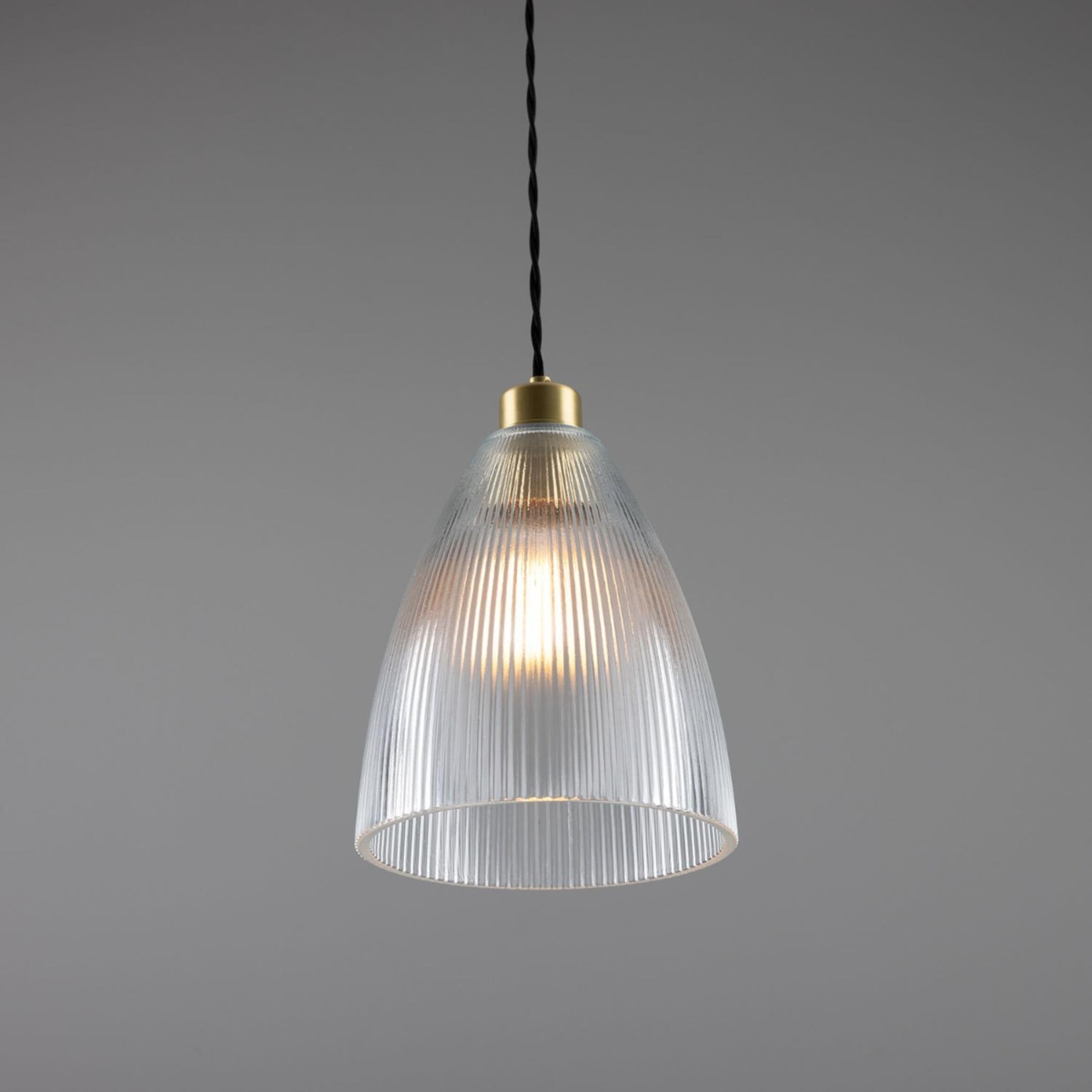 The Kelly Pendant brings a refined, vintage-inspired touch to kitchens, hallways, and intimate dining spaces. Its fluted prismatic glass shade tapers gently toward the top, diffusing light evenly and creating a soft, welcoming glow. Crafted with thoughtful proportions and classic materials, it blends timeless charm with versatile functionality.