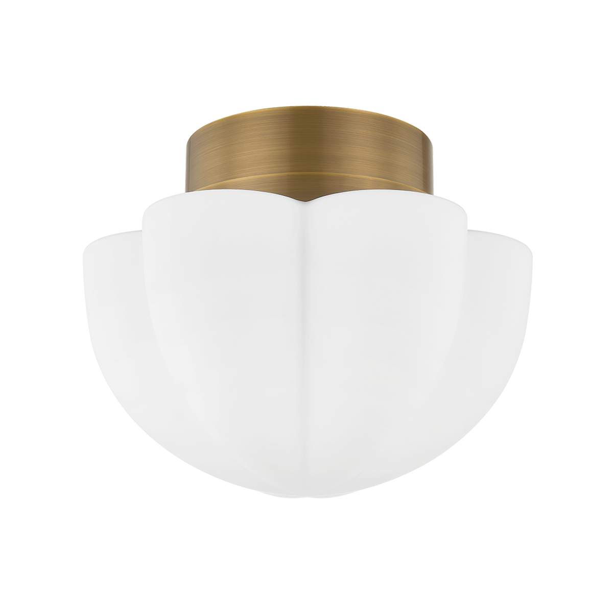 The Seabrook Flush Mount is a charming alternative to traditional can lighting. With its gently scalloped botanical shade and refined craftsmanship, it introduces thoughtful design to transitional spaces. The opal matte glass creates a softly diffused glow, while the Heritage Bronze metal finish lends warmth and sophistication.