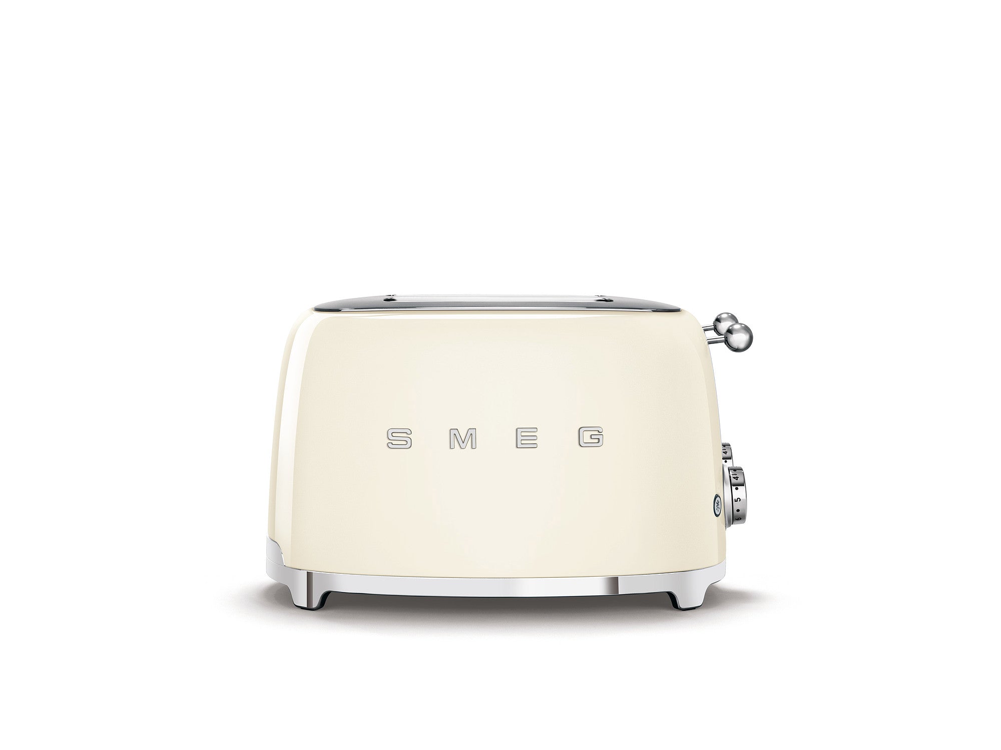 With extra-wide slots, independent controls, six browning levels, and simple preset programs, it delivers consistently even toast and bagels. Backlit chrome knobs, self-centering racks, and removable stainless-steel crumb trays make breakfast—and cleanup—effortless. It pairs seamlessly with other SMEG appliances or stands alone as a statement piece.